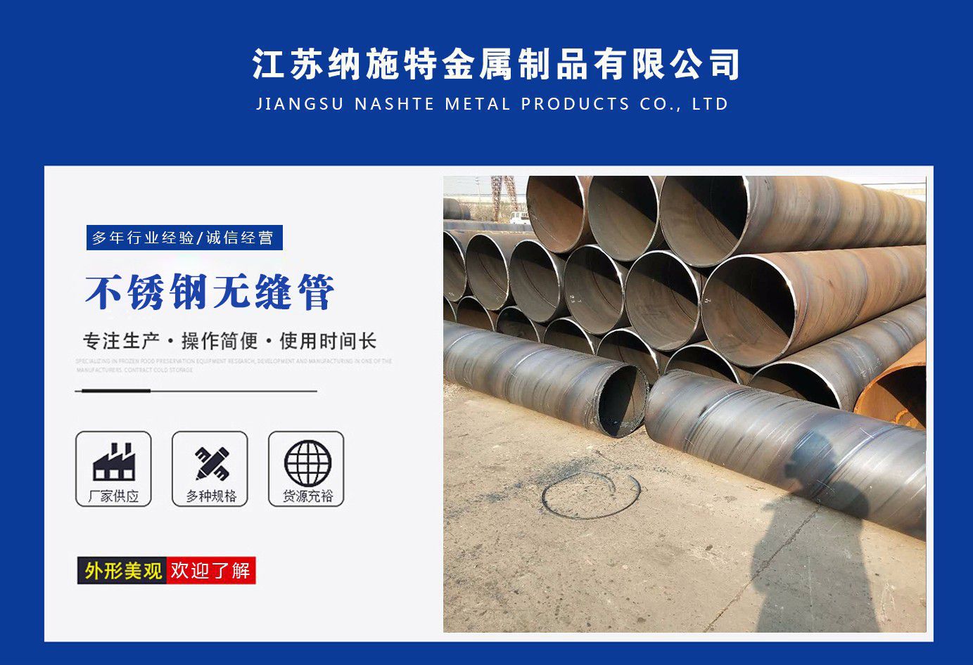 江蘇納施特金屬制品有限公司是一家集生產205不銹鋼無縫管,2507不銹鋼無縫管,316l不銹鋼焊管廠家,不銹鋼工業(yè)焊管廠家,厚壁無縫鋼管廠家等產品,公司庫存多規(guī)格齊全、質量保證。公司一貫以服務至上、質量至上、價格合理、客戶至上、讓利客戶、薄利多銷為原則,誠實守信為宗旨。 公司秉承“優(yōu)質的品質和服務創(chuàng)造企業(yè)品牌”之宗旨,與國內外多家知名廠商建立了長期穩(wěn)定的合作伙伴關系,精心匯聚各廠商的品牌產品,實現了資源互補,以適應市場的不同需求,協助廣大廠商提高自身的競爭力,是您的理想合作伙伴。 公司下屬:業(yè)務部、財務部、快運部、運輸部、倉儲部、加工部、(自備貨車、吊車、行車、自動切割、半成品)免費為用戶提供裝卸等一條龍服務。保證用戶利益、互惠互利做生意、誠心誠意交朋友。 服務承諾:提供優(yōu)質的不銹鋼及有關產品,遵守道德標準,努力提供獨特的產品和高水平服務。 質量承諾:隨時為客戶提供產品和服務,充分領會客戶要求,盡職盡責,永無例外,竭盡全力,持續(xù)發(fā)展。 公司秉承:“顧客至上,銳意進取”的經營理念,堅持“客戶至上”的原則為廣大客戶提供優(yōu)質的服務。 愿我們公司和社會各界同仁、諸位朋友、尊貴的各位客戶攜手并進,共同發(fā)展,同繪新世紀的宏偉藍圖! 公司宗旨:優(yōu)質的品質和服務創(chuàng)造企業(yè)品牌。 經營理念:以...